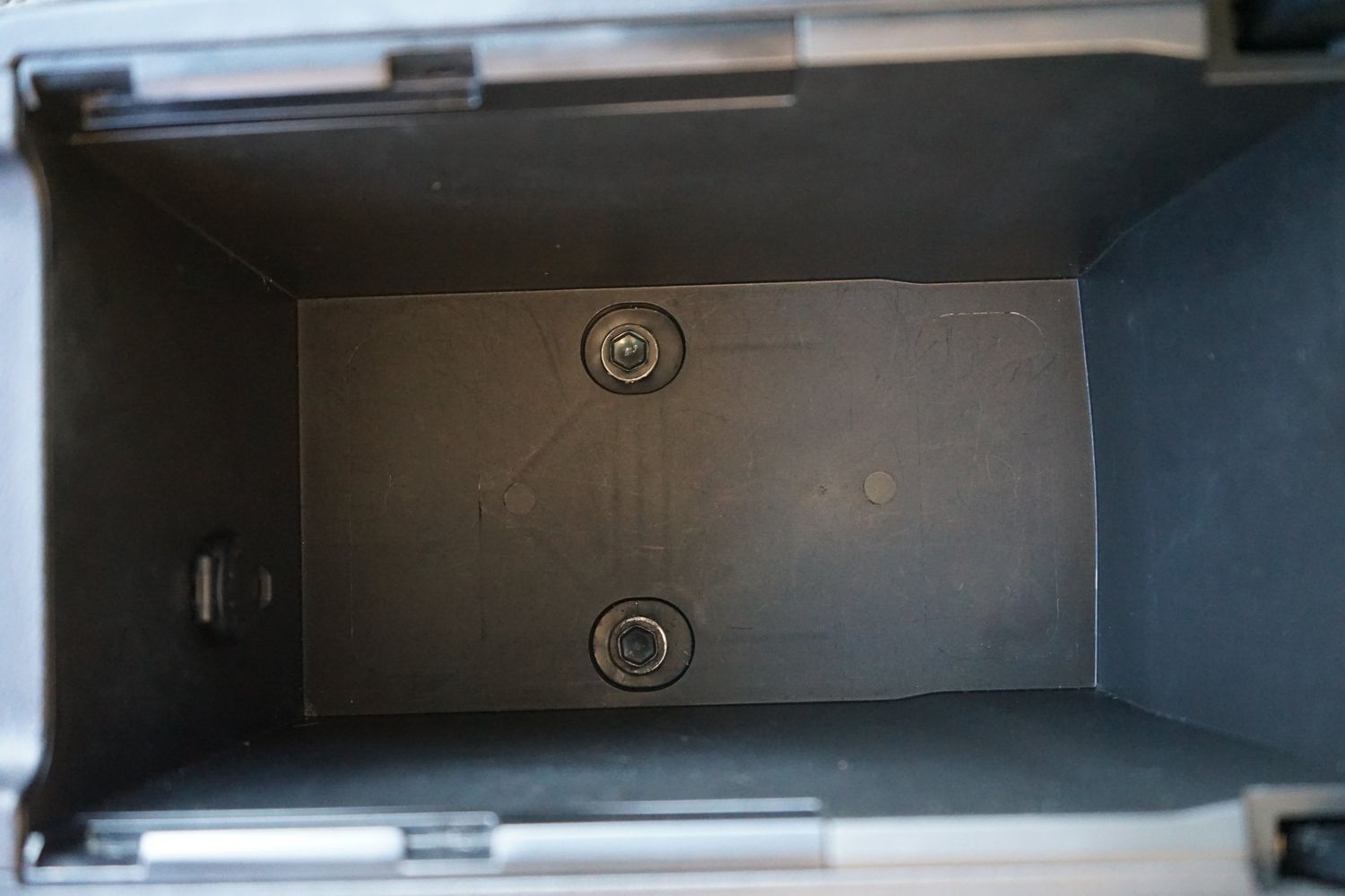 Floor console storage: Covered floor console storage